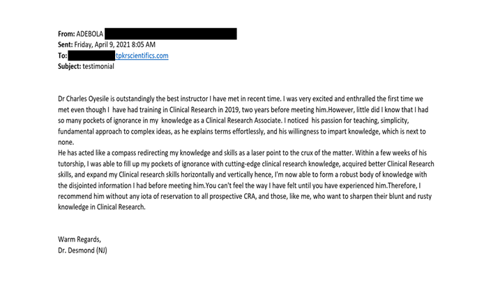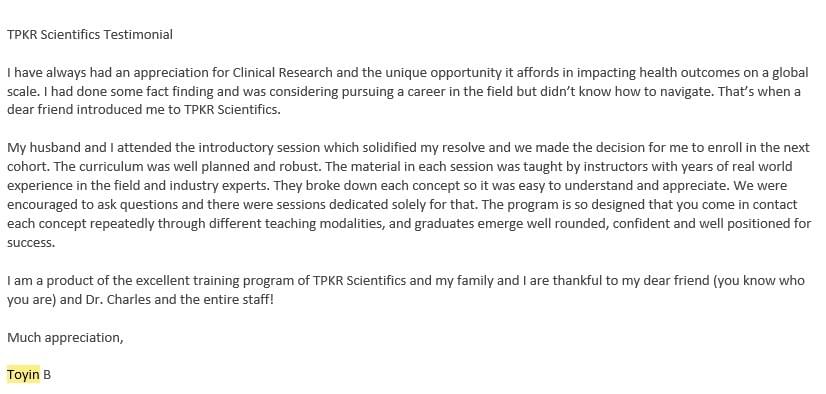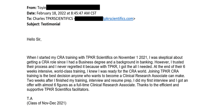 ● You’re getting your resume reviewed and rewritten to ensure you are getting interview opportunities to land your dream job in clinical research
